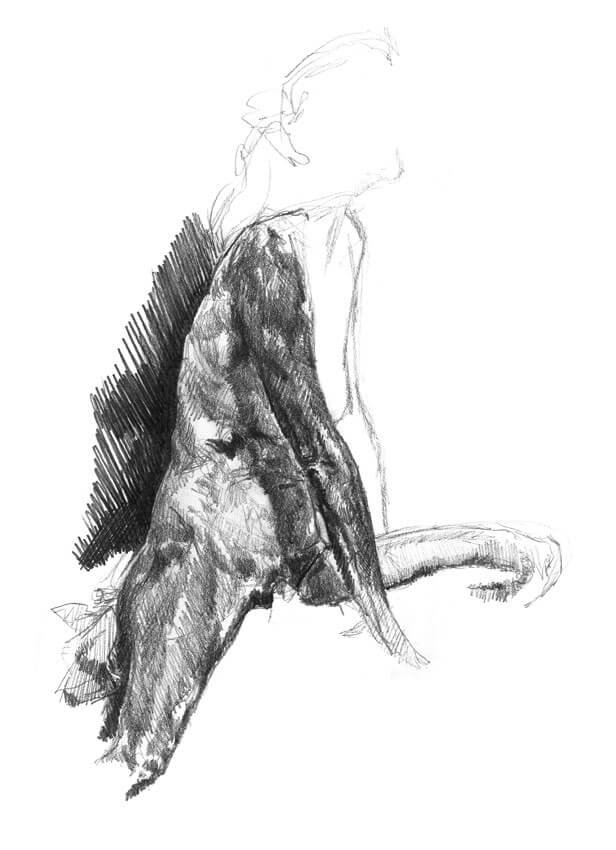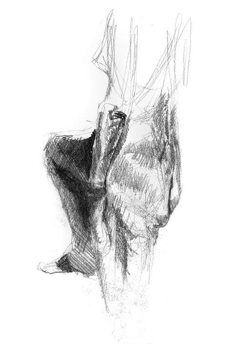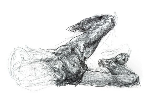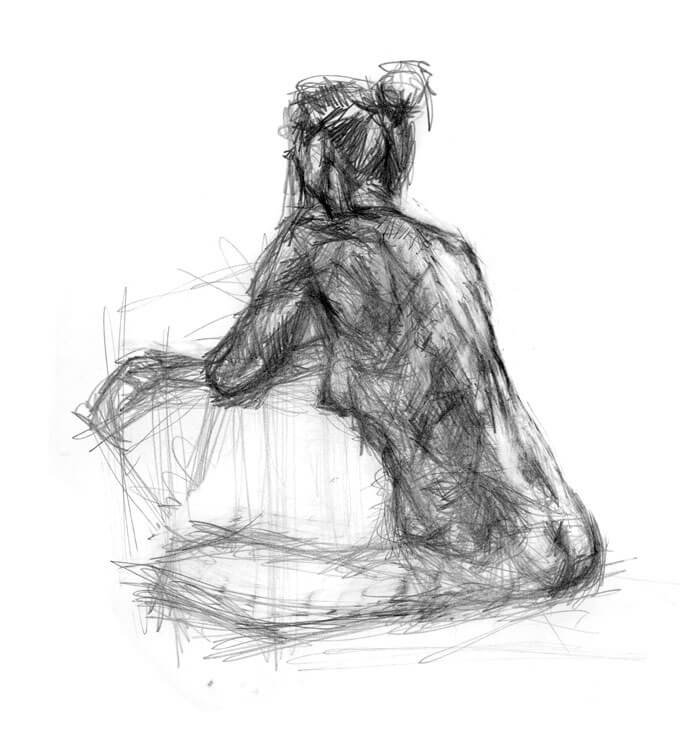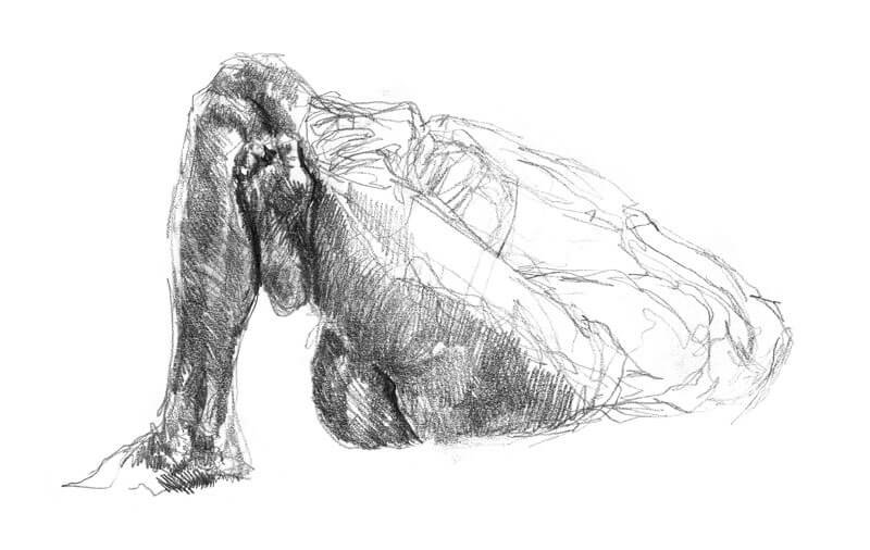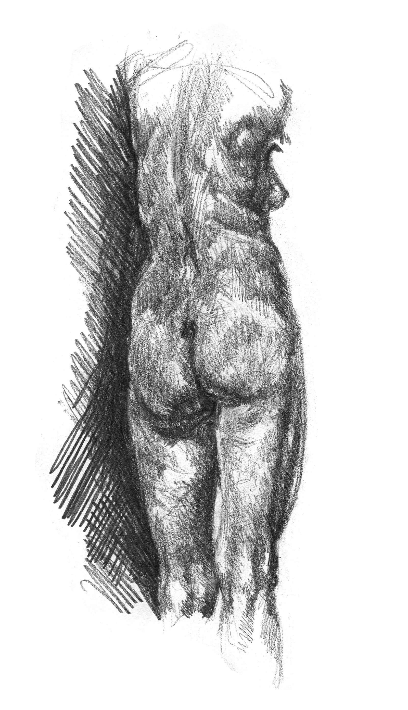 Christine modeled twice a week for months as we studied anatomy. After drawing from a real skeleton for a semester the class graduated to a live model. Christine's physique is a natural progression in the study of anatomy. Her thin frame made visible the muscle groups and even tendons. She was also perfect in the way the muscle mass could flex and fall to better illustrate the weight and movement of flesh.