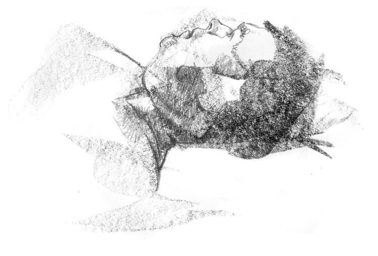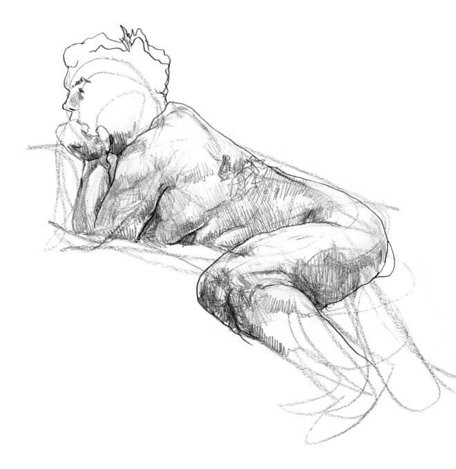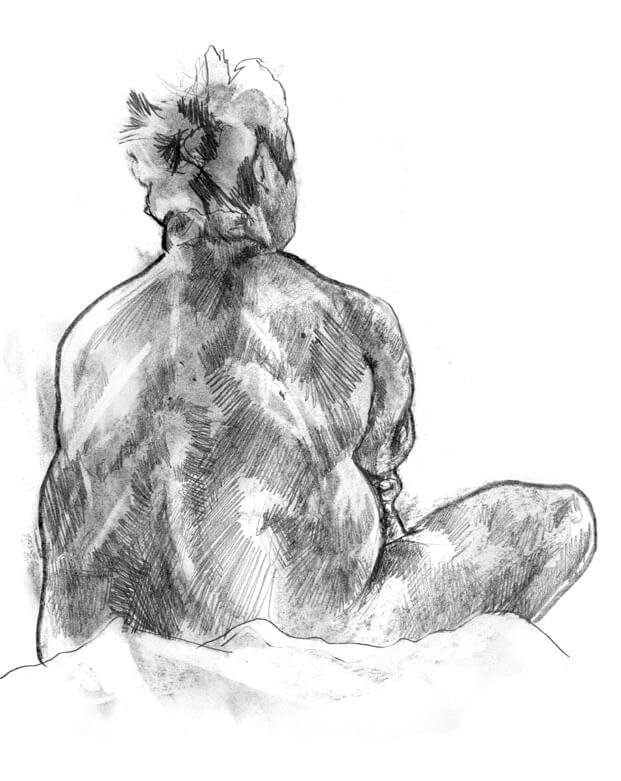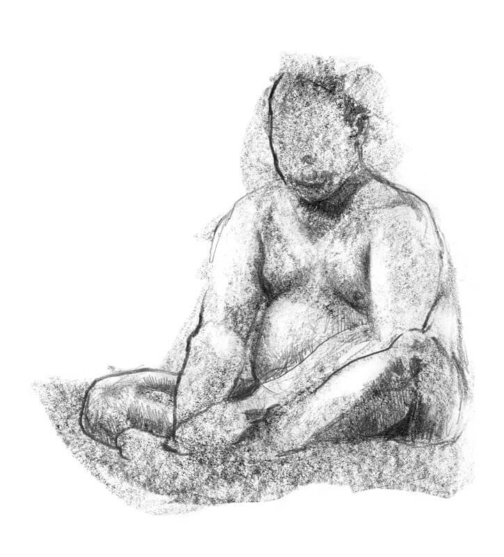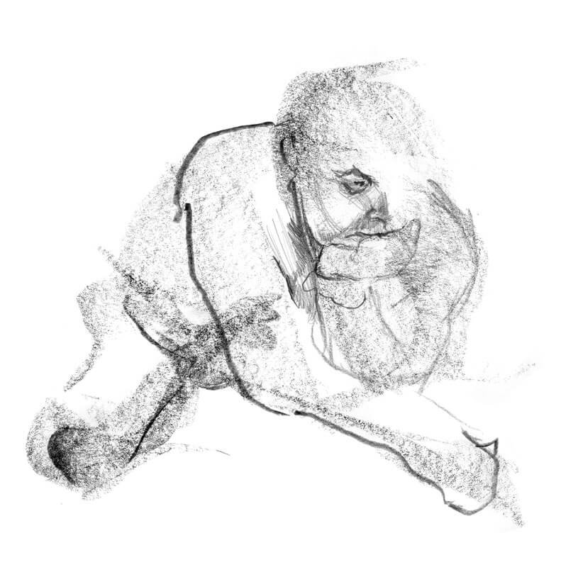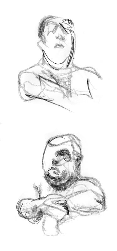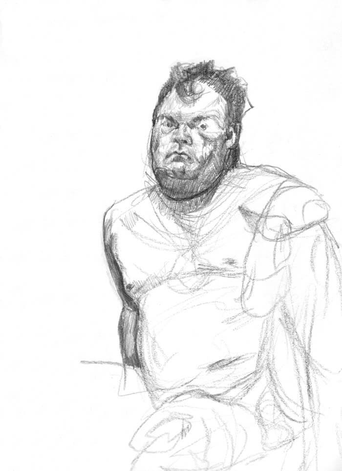 Many of the portraits I have drawn of Don have dead eyes that stare off into nothingness. This made drawing Don difficult because I like to capture moods as well as likeness. To combat the boredom of drawing a bored model I tried a few different techniques to re-engage. Overall an interesting model who pushed me to find the challenge in every pose.