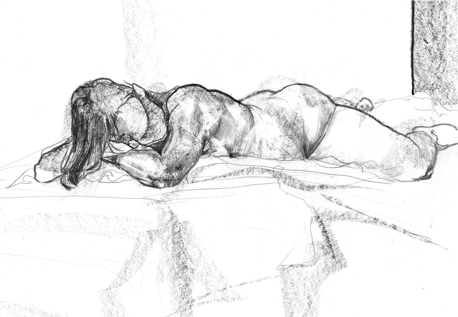 When I look over this collection of drawings I can't help but notice the difference in texture. It has everything to do with a sutble switch between willow charcoal and a block of graphite at the beginning of each drawing. The gesture in graphite is not as easily lost as it is in charcoal.
